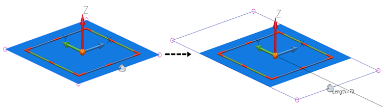 は、引伸ばしサーフェスの 長さ と マイナス長さ を編集します。