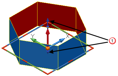 次図のように、各プリミティブに対して、ワークプレーンのグラフィックハンドルに類似したハンドルが表示されます。 表示されるグラフィックハンドルは、プリミティブのタイプにより異なります。