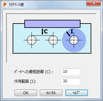 - [値を編集]: [クリアランス値]ダイアログが表示され、孔のエラー チェックの距離を設定できます。