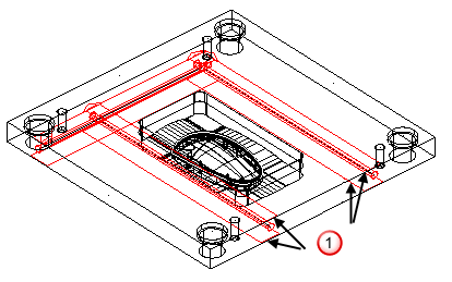 - クリアランスエラー - クリアランスエラーが検出された冷却孔は、赤(デフォルト配色構成)で表示されます。