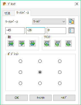 をクリックして[ポジション]ダイアログを表示してプリミティブの新規原点を定義