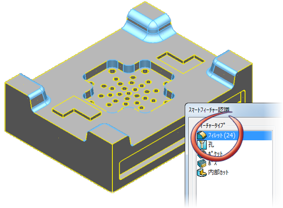 - タイプと選択条件を満たすソリッド内のフィーチャーを検出します。