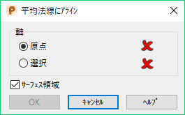 サーフェス領域 が選択されている場合、選択の平均法線は のようになります。