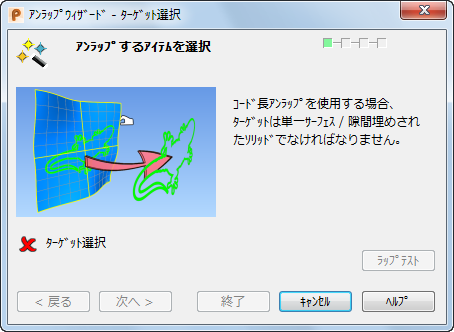 - [ワイヤーフレーム]タブ > [選択から]パネル > [ラップ] > [アンラップ]をクリックして、アンラップ ウィザードを開始します。