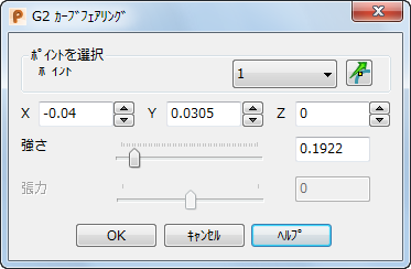 G2 カーブフェアリング ダイアログを使用して、G2 カーブの形状を編集できます。