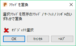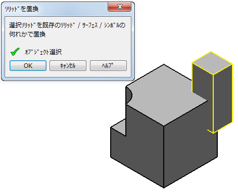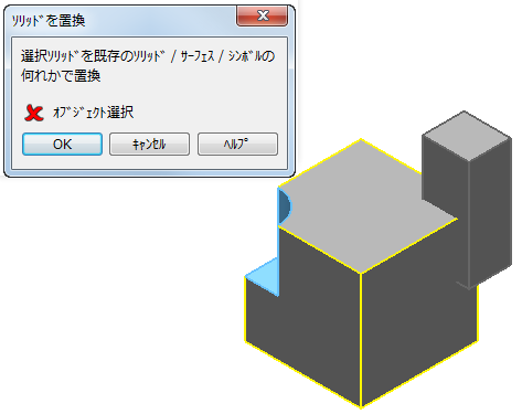 [オブジェクト選択]: フィーチャーの置換対象になるオブジェクトが選択済みかを示します。置換対象には、ソリッド、サーフェス、シンボルを使用することができます。