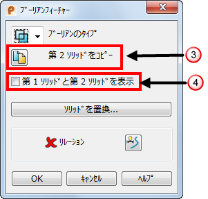 をダブルクリックし、ブーリアンフィーチャー ダイアログを表示します。