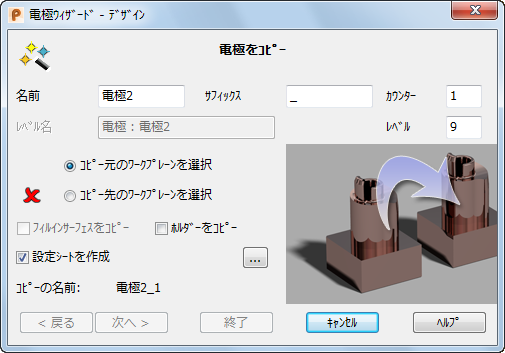 電極 ウィザードの 電極をコピー ページが表示されます。