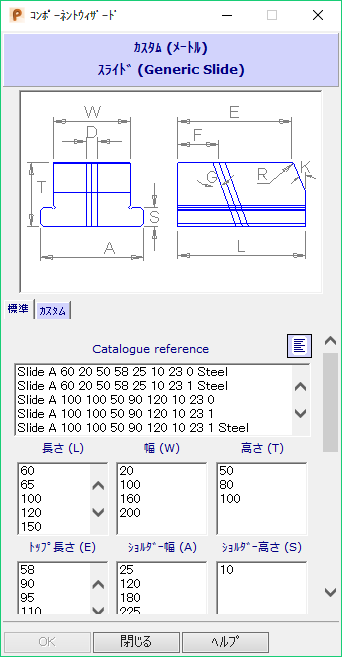 ウィザードのこのページが表示されている場合、オプションは使用できません。選択したスライドのコンポーネントを最初に指定する際、コンポーネントに関する詳細情報を入力するための[コンポーネントウィザード]ダイアログも表示されます。