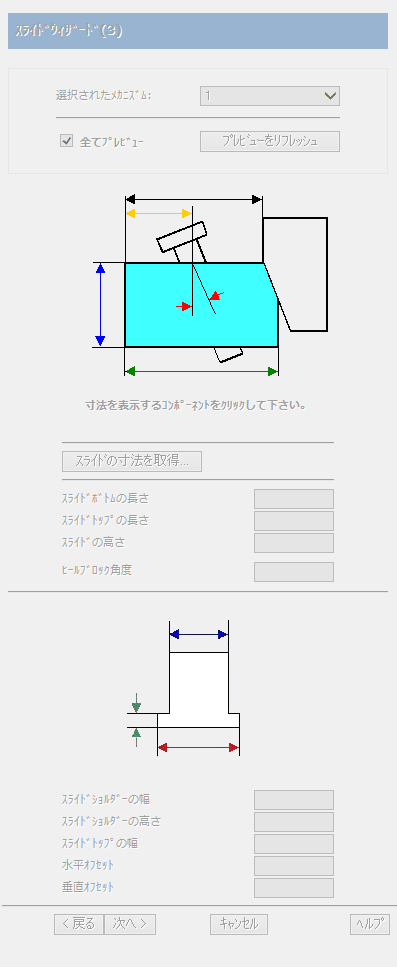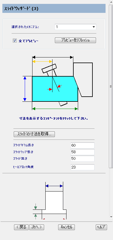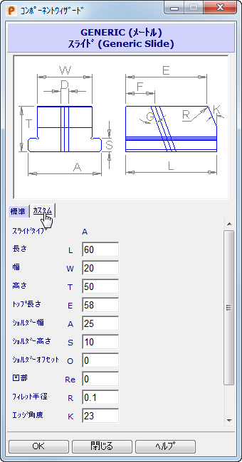 このダイアログには、ウィザードで入力した値が表示されます。このダイアログを使用して、コンポーネントの小さい寸法(半径や面取りなど)を編集することができます。