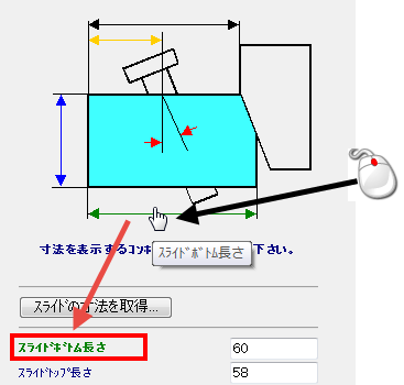 このページでは、スライドの 3 つのメイン コンポーネントの基本的な寸法を定義することができます。