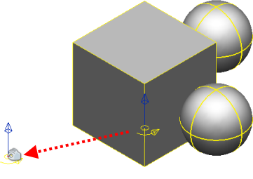 グラフィックウィンドウで、回転軸マーカーが表示されます。現行ワークプレーンの原点の矢印により、基準平面に垂直な軸が示されます。回転軸を中心として、オブジェクトが回転します。