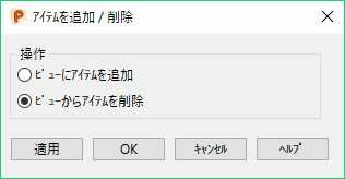 ビューにアイテムを追加 - 過去にビューから削除したアイテムを、ビューに戻します。