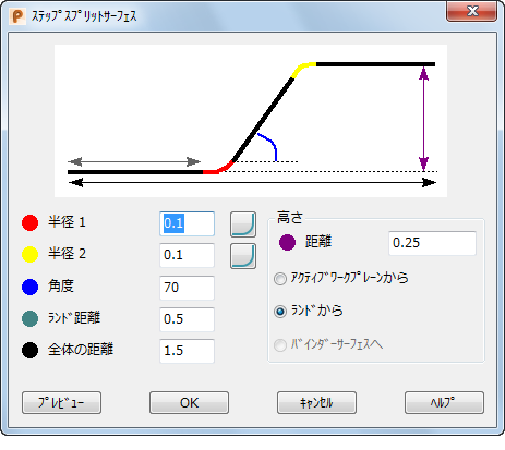 このダイアログを使用して、ステップ スプリット サーフェスを作成します。