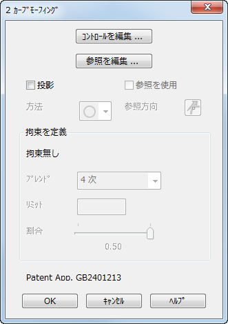 このページの残りのオプションについては、「[サーフェスモーフィング]ダイアログ: [2 カーブ]」を参照してください。