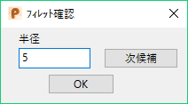 - フィレット確認 ダイアログを使用して、フィレット半径を指定します。