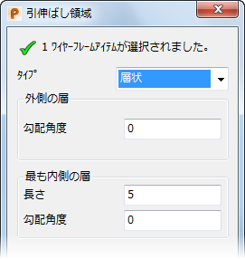 層状 は、引伸ばしの高さを定義するためのワイヤーフレーム / テキストアイテムの高さを使用します。 修正されたダイアログが表示されます。
