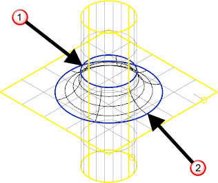 次に示すサーフェスには、2 つのトリム バウンダリーが存在します。1 つは円筒