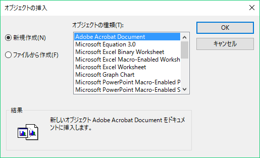 新規オブジェクトを作成した場合、オブジェクトがドローイングに追加され、オブジェクトのアプリケーションが開きデータを挿入できるようになります。ファイルを保存して閉じると、オブジェクトの内容がビューに表示されます。