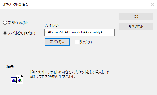 既存のファイルからオブジェクトを作成する場合、ファイルから作成 オプションをクリックします。ダイアログが次のように変化します。