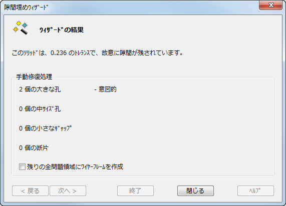 閉じる - 隙間埋めウィザード を閉じて、必要なワイヤーフレームを作成します。