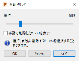 ヒント: PowerShape は、保持するサーフェスと、削除するサーフェスの数を推定します。ダイアログを開いた際のスライダーの位置がこれを示します。