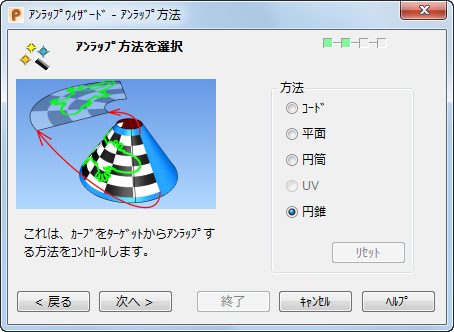 次の方法で、円錐をアンラップします。