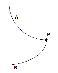 2 つの接線ベクトルはポイント P で定義されます。1 つはカーブ A