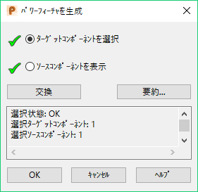 このダイアログを使用して、パワー フィーチャーを生成する際のターゲットとソースのコンポーネントを選択します。