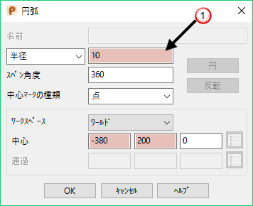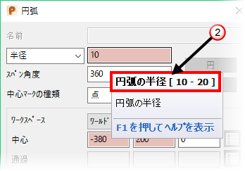 : ピンクで強調表示されているプロパティは、選択した円弧により異なります。