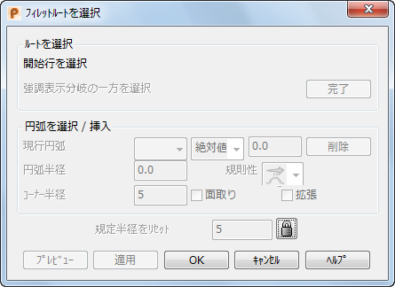 分岐点がある場合、フィレットルートを選択 ダイアログがこれらを強調表示します。