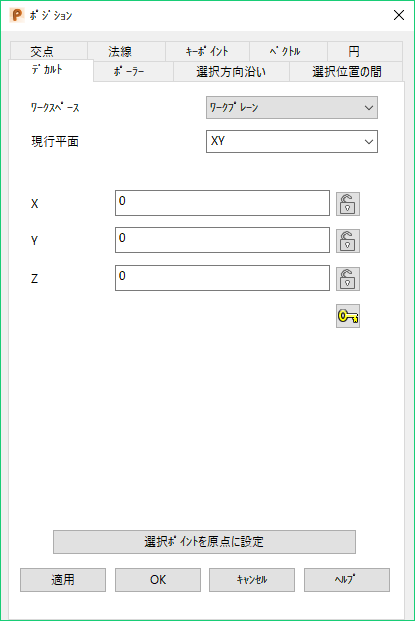 カーソルでポジション(X、Y、Z の値)を入力するだけでは十分でない場合、[ポジション]ダイアログを使用し、より詳細なコンストラクションを設定できます。たとえば、このダイアログを使用して、オブジェクト沿いに指定した割合でポイントを指定することができます。