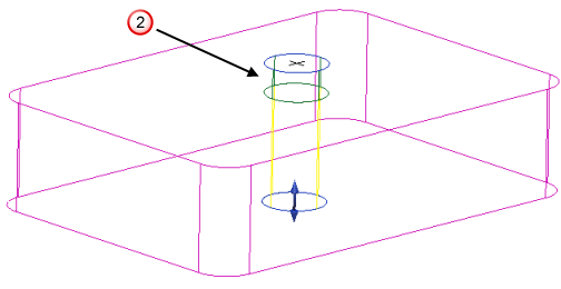 - 安全マージンを、(サーフェス交差を孔が完全に通過するのに十分大きい)自動的に生成された値に設定します。 オフセット安全距離テキストボックスは利用できません。このオプションを選択解除すると、オフセット安全距離は手動で設定されます。