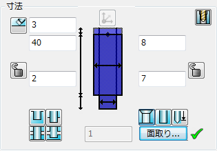 をクリックして、孔の面取り ダイアログを表示します。