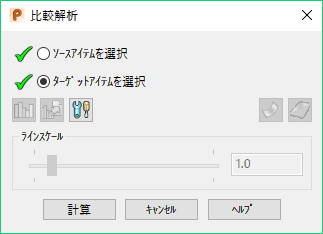 1. [視覚化]タブ > [モデル]パネル > [解析]をクリックして、[比較解析]ダイアログを表示します。