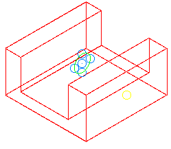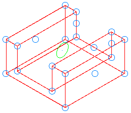 をクリックして、カーソルにワークプレーンを取付け、ソリッド上のキーポイントとして青い丸を表示します。