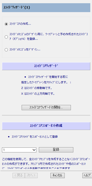次の方法で、スライドコアウィザードを実行します。