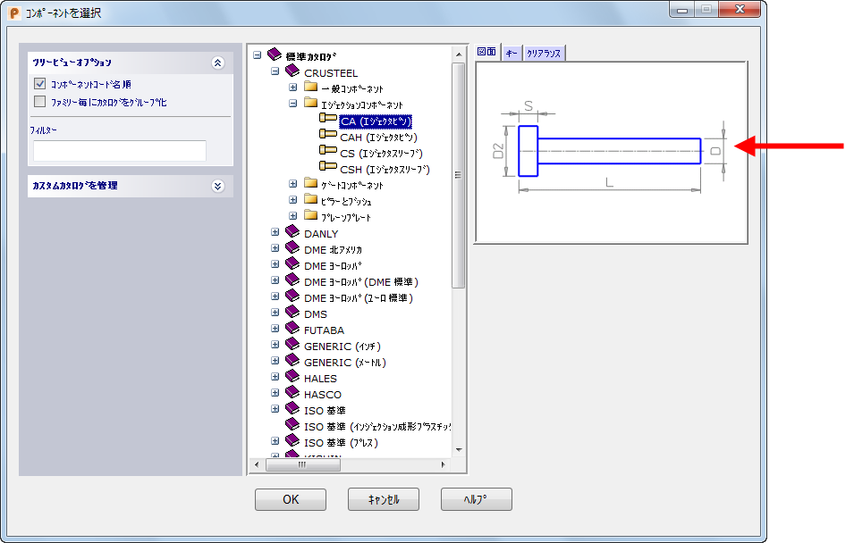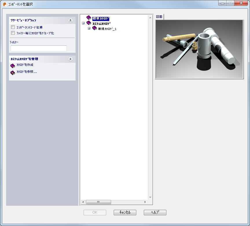 : コンポーネントのリストを表示するカタログを選択します。作成するコンポーネントを選択します。コンポーネントのイメージがダイアログに表示されます。