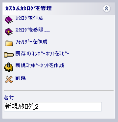カスタムカタログを管理 - カタログを作成、編集、構成します。この機能の詳細と例については、Toolmaker マニュアルの「カスタム カタログ」のセクションを参照してください。