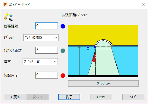 拡張距離 - アンダーカット領域からのコアプラー拡張距離です。