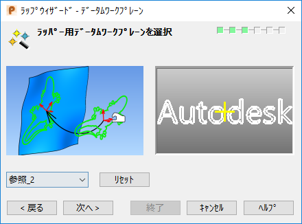 リセット - 選択のワークプレーンにアラインするために、参照ワークプレーンをリセットします。