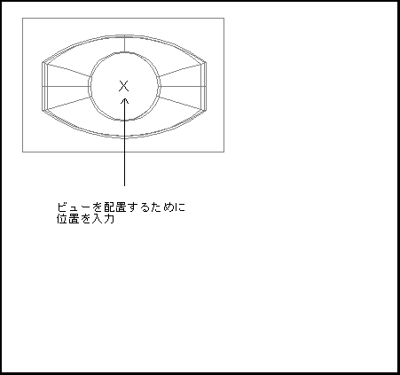 この例のビューには、円と十字の印が付いています。これはビューの原点を示すものであり、[ビューを編集]ダイアログを使用して変更することができます。