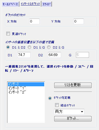 ポケットのオフセット - コア / キャビティプレート内で、ポケットの位置をオフセットします。