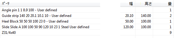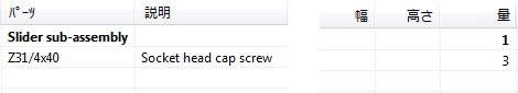 - サブアセンブリヘディングを右クリックして、コンテキストメニューから まとめ を選択します。表が「まとめ」モードで表示されます。