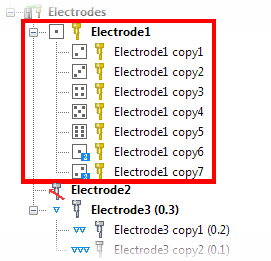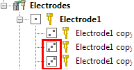 電極ツリーにはさまざまなタイプの電極が表示され、異なるアイコンで示されています。