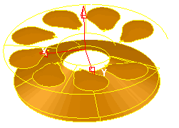 次の例では、アンラップしたカーブのガイドラインを使用して、洋ナシ形のパターンをインポートしています。