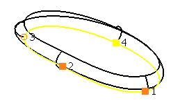 挿入 に 1.5 を入力すると、ポイント 1 とポイント 2 の間に別のポイントが作成されます。その後、ポイントが再ラベル付けされるため、挿入されたポイントがポイント 2 になります。新規ポイントの 長さ と バルジ パラメーターを編集して、サーフェス形状をより正確に制御することができます。