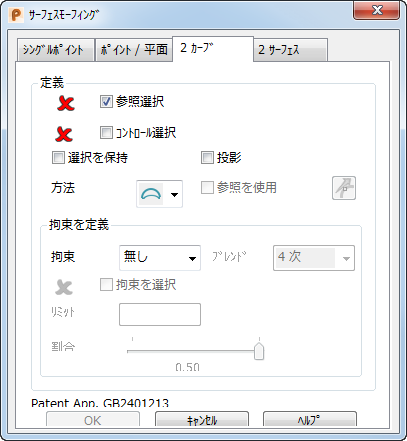 このオプションは、サーフェス全体をモーフィングする場合や、モデルの不連続部分沿いに定義されたリミットカーブがある場合に適しています。