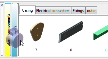 コンポーネントをクリックドラッグして、垂直ライブラリタブ、または、カテゴリータブ上に配置します。