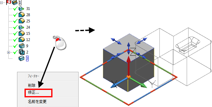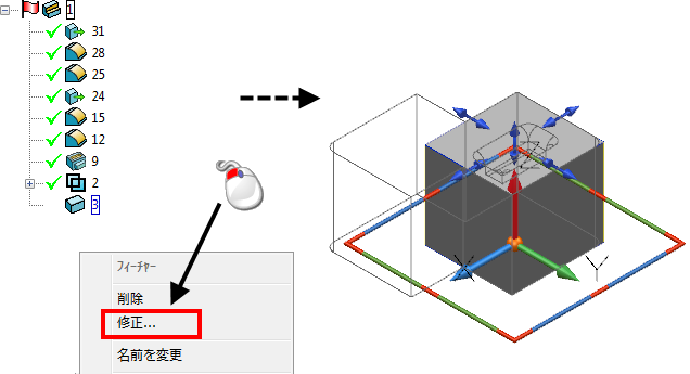 - ダブルクリックしてフィーチャーをクイック修正 - ソリッドフィーチャーをダブルクリックするとデフォルトで表示されるグラフィックや編集オプション数が少なくなり、フィーチャー別のダイアログを素早く修正できます。
